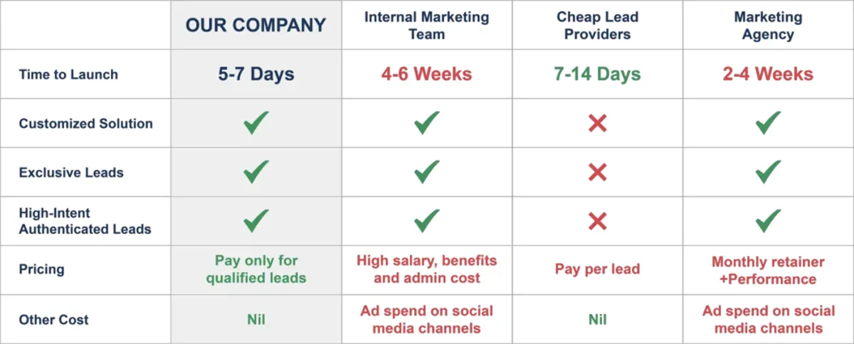 Get pre-qualified prospects sent to you in real time—no marketing spend required. We handle the advertising, apply your ideal client filters, and deliver ready-to-convert leads within 24 hours. You only pay for leads that truly fit your business.